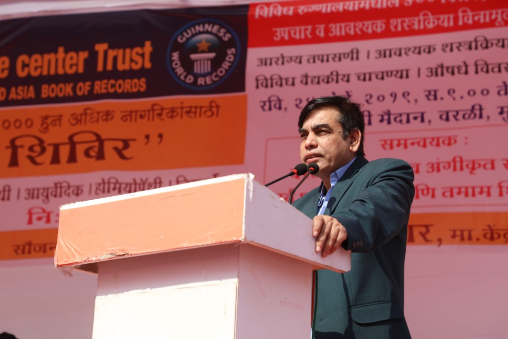 Guinness Book of World Records holder R K HIV AIDS Research and Care Centre First time in the history of the world organized the World’s biggest free General medical camp for 6 Lakhs needy people at Tuljapur on 27th,28th, and 29th October 2023. A team of medical support was there for the massive support along with Jaslok Hospital, Lilavati Hospital, Jupiter Hospital, and HCG Hospital who provided free eye tests, spectacles distribution, health checkups, medicine distribution, blood tests, ECGs, sonography tests, wheelchair distribution and many more facilities. The Chief Guest for this camp was Dr. Tanaji Rao Sawant ( Honourable Health and Family Welfare Minister of Maharashtra)