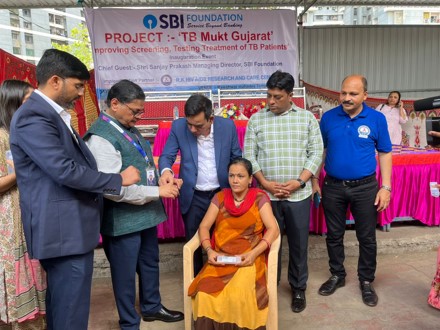 Guinness Book Of World Record Holder R K HIV AIDS Research And Care Centre Organized TB Mukt Arogya SHIVIR Supported by SBI Foundation at Tarwadi Amroli Surat. The medical camp happened on 14 June. Chief guest Shri Sanjay Prakash Managing Director of SBI Foundation along with Mr Raja Ram Chauvan Manager of SBI and a team of around 4900 patient beneficiaries benefited from TB prevention Detection and treatment along with wheelchair Spectacles. Medicines Distribution More than 34 doctors from various fields participated in this TB Mukt Medical Camp