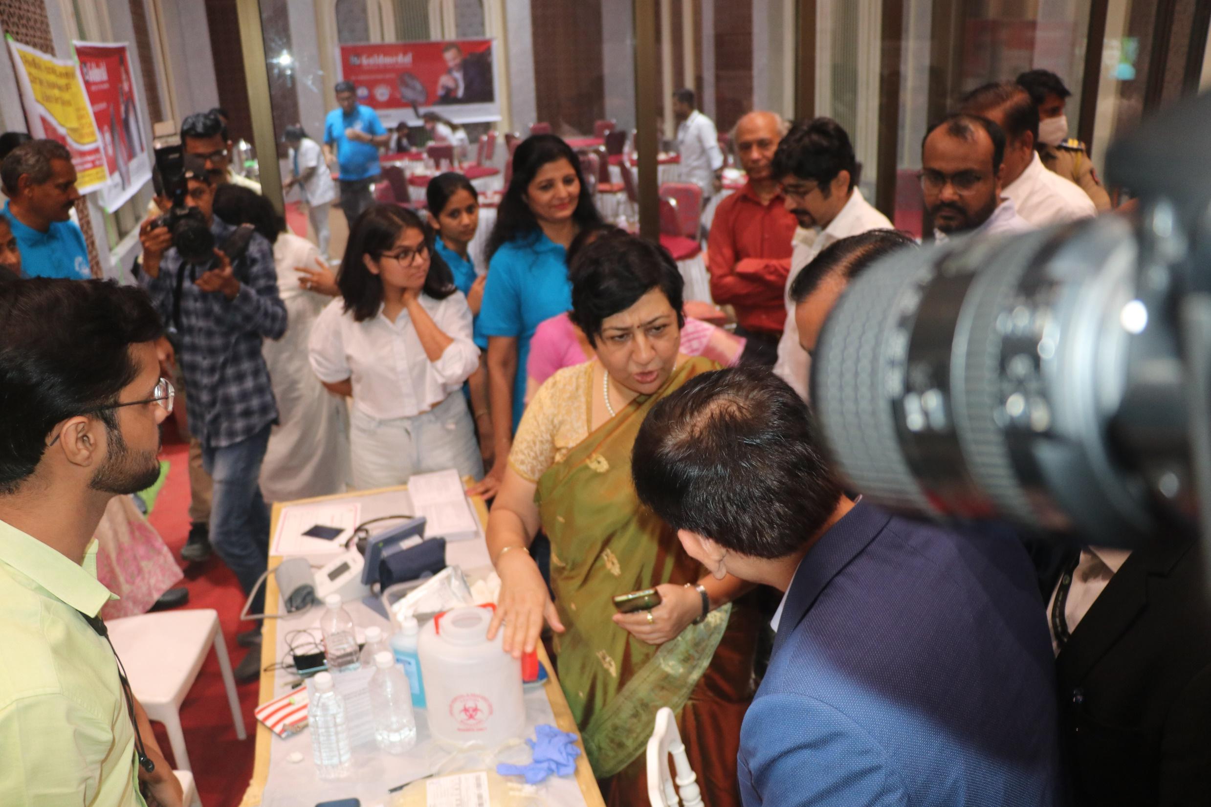 The event was spearheaded by Dr. Dharmendra Kumar, Chairman, Doctor 365 & RK HIV AIDS Research and Care Centre, and actor-producer-director Dheeraj Kumar (Chairman, Creative Eye Ltd.). The camp was graced by the presence of several distinguished guests, including **legendary musician Dilip Sen, international fashion designer Dr. Archana Kochar, actor Rakesh Pandey, Dr. Govind Reddy (Director, R.N. Poddar Ayurveda Medical College), Dr. Prachi Bedekar (CMP Medical College), Mr. Vishal Singh (Director), Mrs. Nirmala Jaiswal (Shri Ram Nursing College Team), Dr. Anil Pandey & Team, Dr. Suhas Vora (Trustee, IMA Juhu), Mr. Mahendra Poddar (President, Chitrakoot Maidan), Mr. Mahesh Manwani (Advisor), Mr. Harish Choksi (RTN DS), and many other prominent personalities.